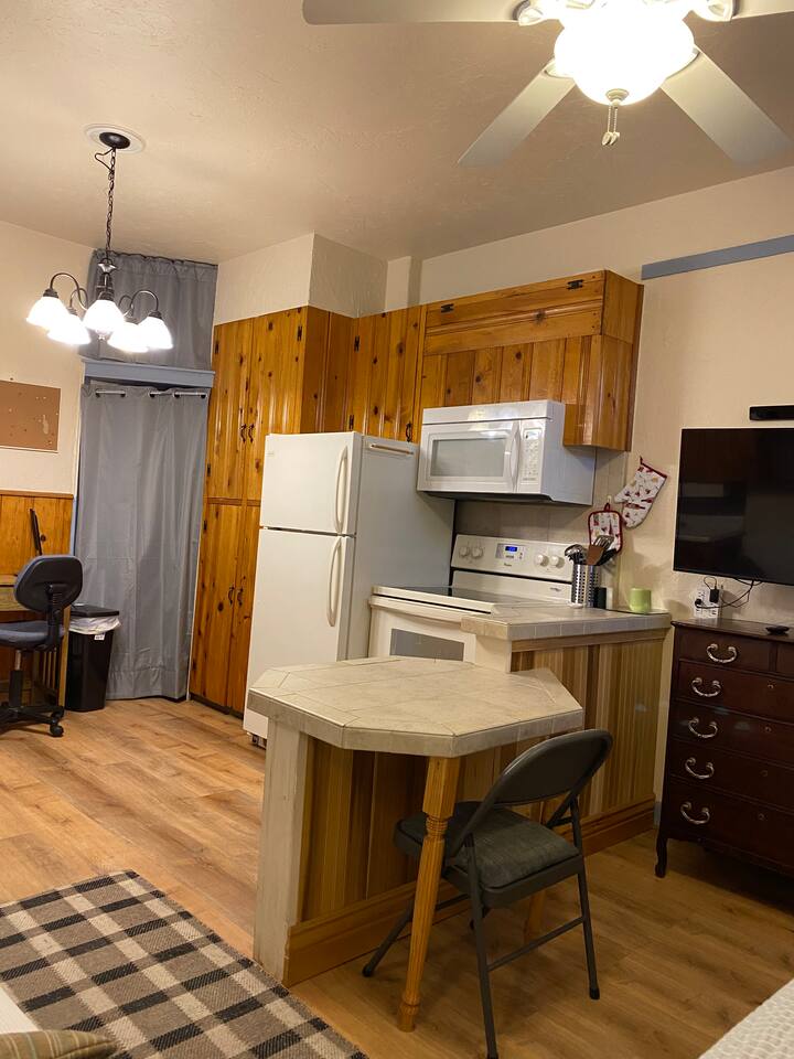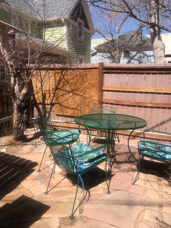 Cozy one-person downtown studio, with private yard and entrance, close to trails, parks, downtown. Short walk or bike ride to the heart of downtown shopping, dining, entertainment, churches, library, and museums. ½ block south of Colorado College, and just a few blocks from Monument Valley Park and the Pikes Peak Greenway Trail. 1/2 block from the free downtown shuttle, and other bus stops.
